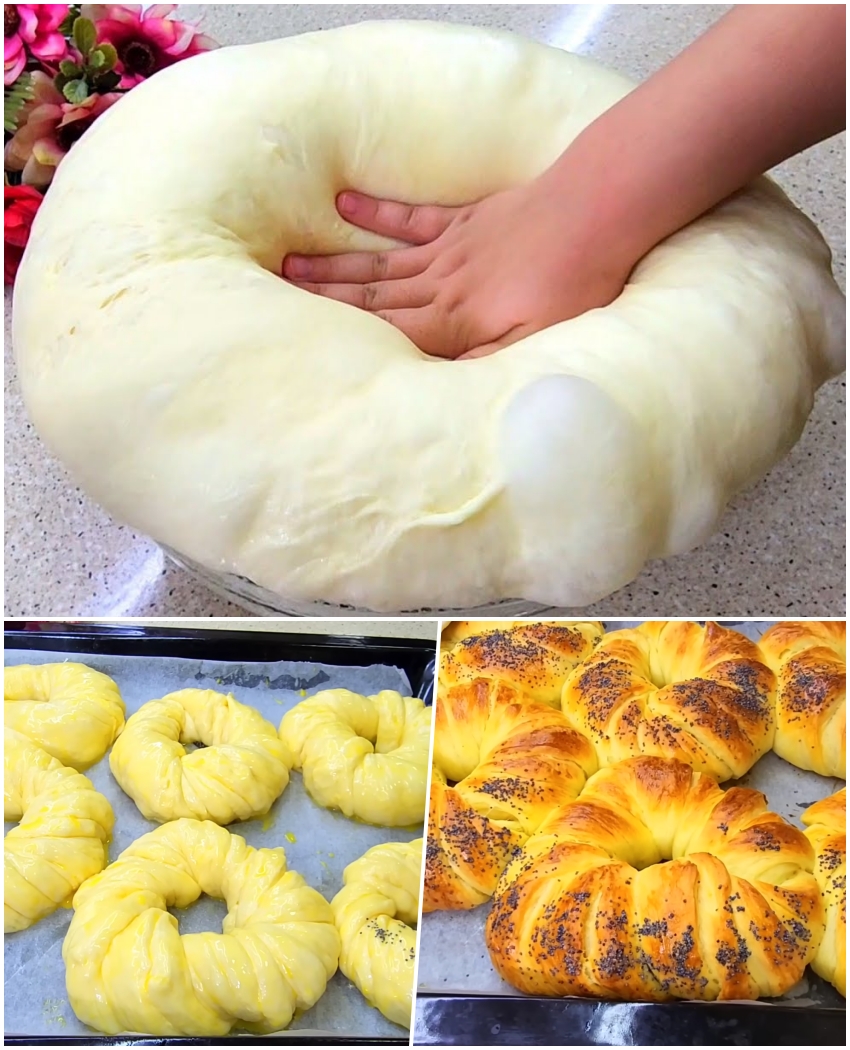 Îi așezăm în tavă tapetată cu hârtie de copt. Ungem cu gălbenuș amestecat cu lapte și presărăm mac sau susan.